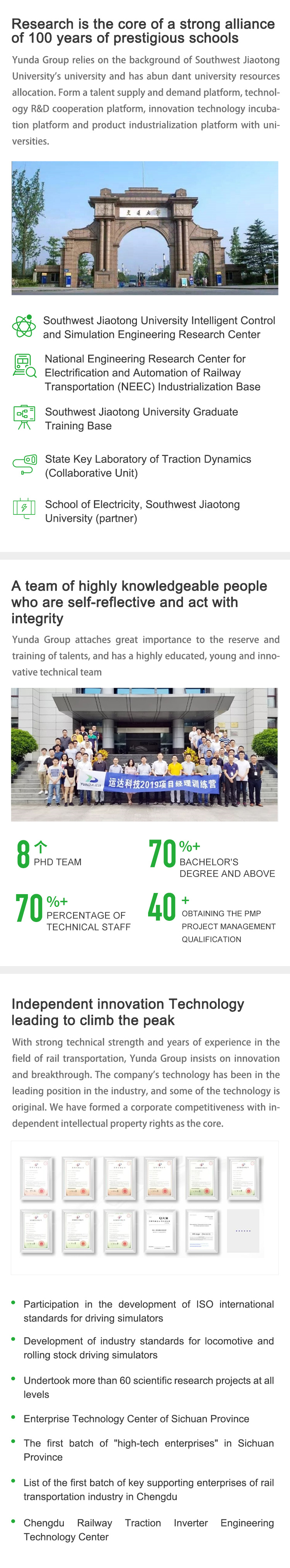 Chengdu Yunda Technology Co., Ltd. (hereinafter referred to as "Yunda Technology") originated from a school-run enterprise of Southwest Jiaotong University founded in 1992 and listed on Shenzhen Stock Exchange in April 2015 (stock code: 300440).Adhering to the mission of "making transportation safer and more convenient", the company is committed to providing intelligent solutions and services for rail transportation business. It is one of the few leading high-tech enterprises with core independent intellectual property rights and production capacity in China.At present, the company has about 1,000 employees and its business covers more than 10 countries and regions.