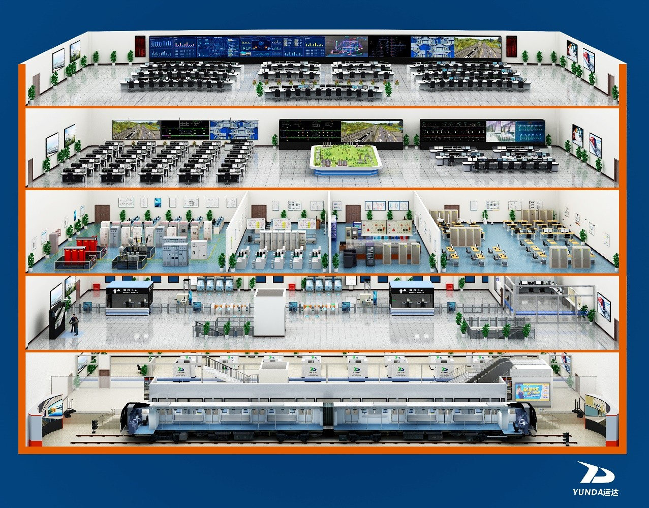 城軌綜合運(yùn)營(yíng)仿真培訓(xùn)系統(tǒng)可用于對(duì)城市軌道交通各專業(yè)各崗位人員的崗位技能進(jìn)行培訓(xùn)與考核。系統(tǒng)基于真實(shí)原理仿真,最大程度還原運(yùn)營(yíng)現(xiàn)場(chǎng)實(shí)際情況,可滿足各專業(yè)各崗位的一次標(biāo)準(zhǔn)作業(yè)、故障非正常處理、多工種應(yīng)急演練、設(shè)備檢修維護(hù)等方面考培需求。針對(duì)列車(chē)運(yùn)行場(chǎng)景,采用榮獲四川省科技進(jìn)步一等獎(jiǎng)的"城軌列車(chē)虛擬運(yùn)行環(huán)境關(guān)鍵技術(shù)",逼真還原"人-車(chē)-線-網(wǎng)"復(fù)雜運(yùn)行環(huán)境,并基干場(chǎng)景建模、虛擬聲場(chǎng)重建、可視化關(guān)聯(lián)分析等前沿技術(shù)打造新一代多工種聯(lián)合演練綜合平臺(tái),為裝備設(shè)計(jì)、方案驗(yàn)證以及人員培訓(xùn)提供了數(shù)字化、自動(dòng)化、智能化的綜合平臺(tái),提升了相關(guān)工作開(kāi)展的質(zhì)量和效率。